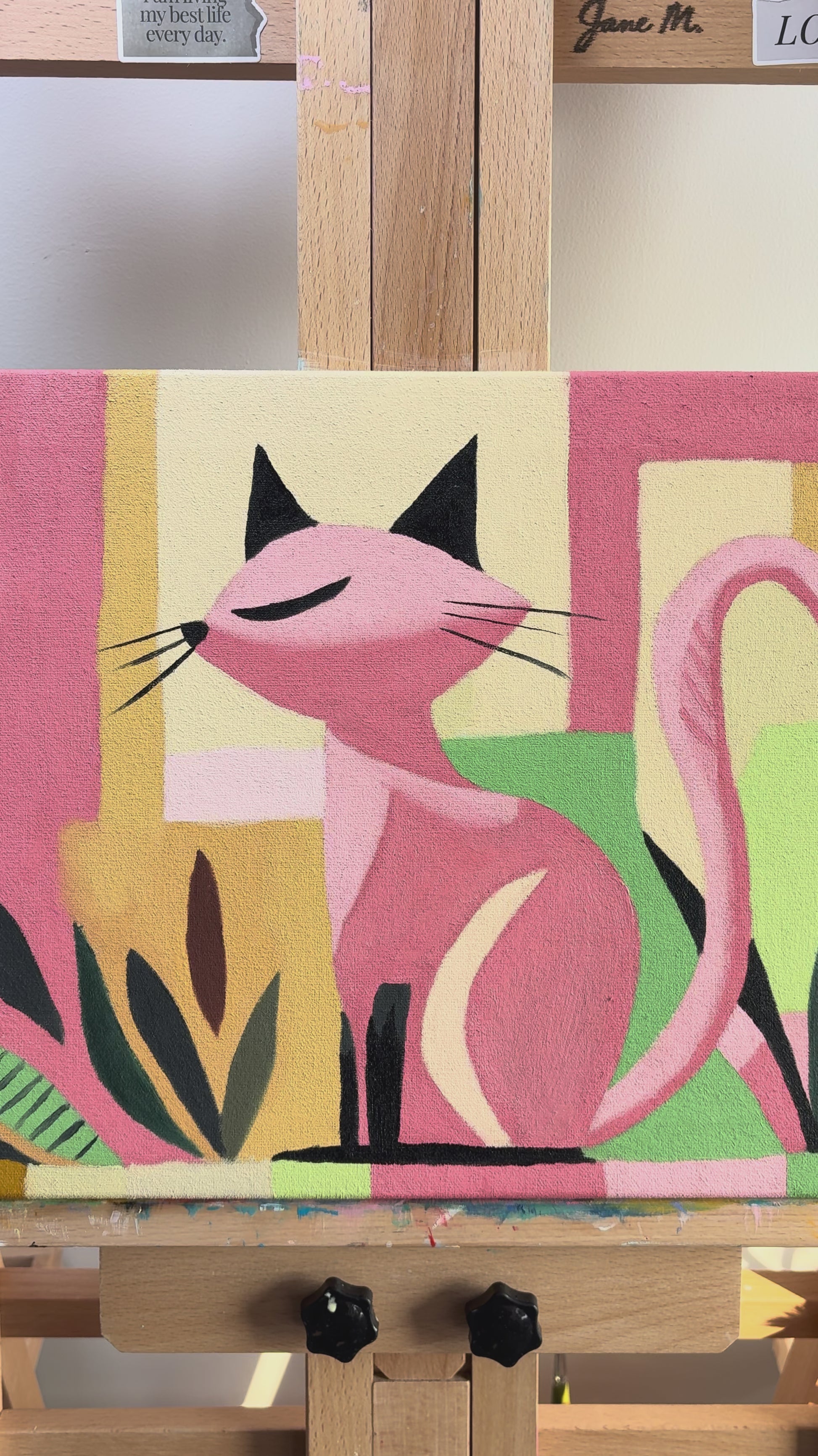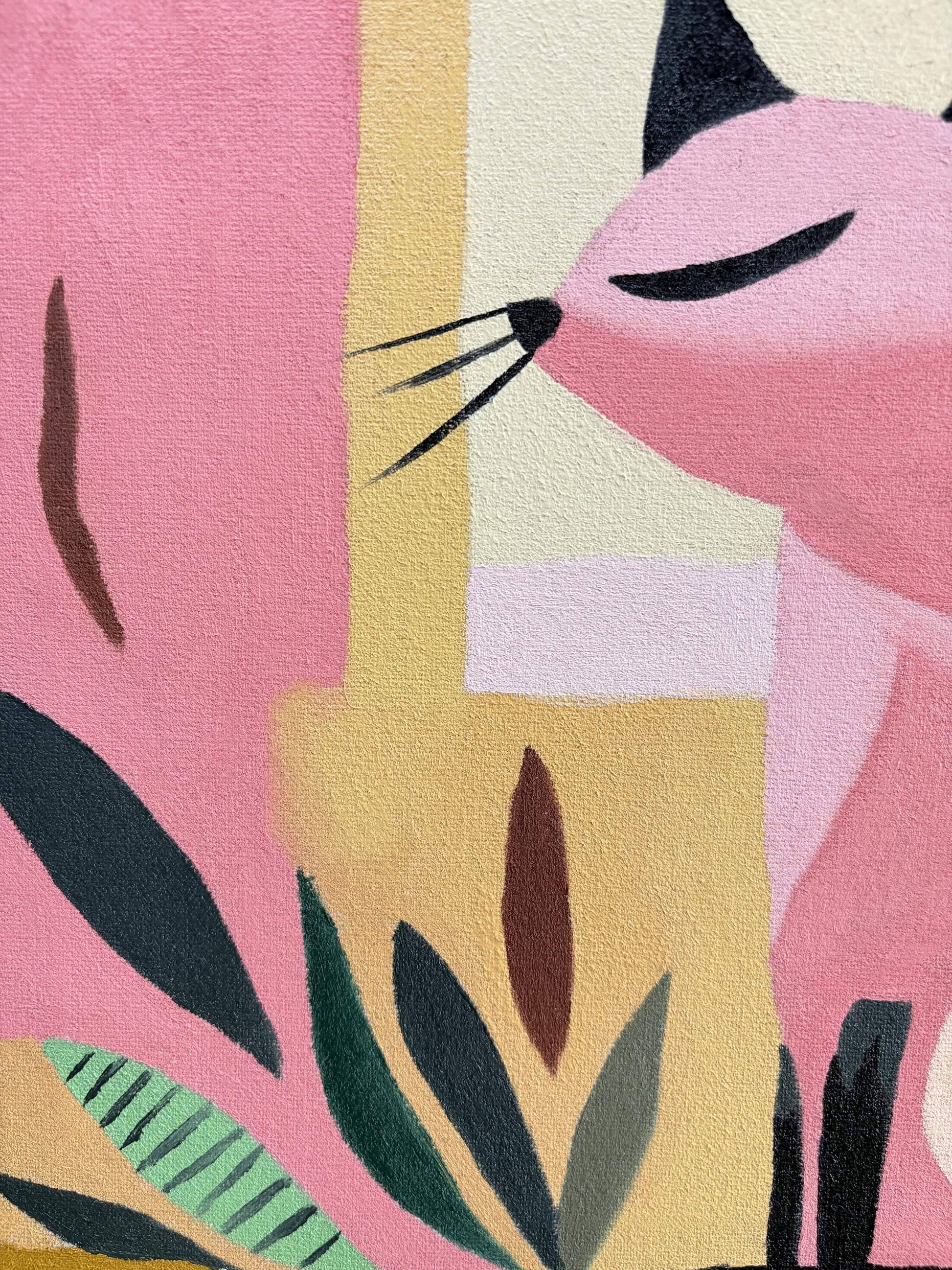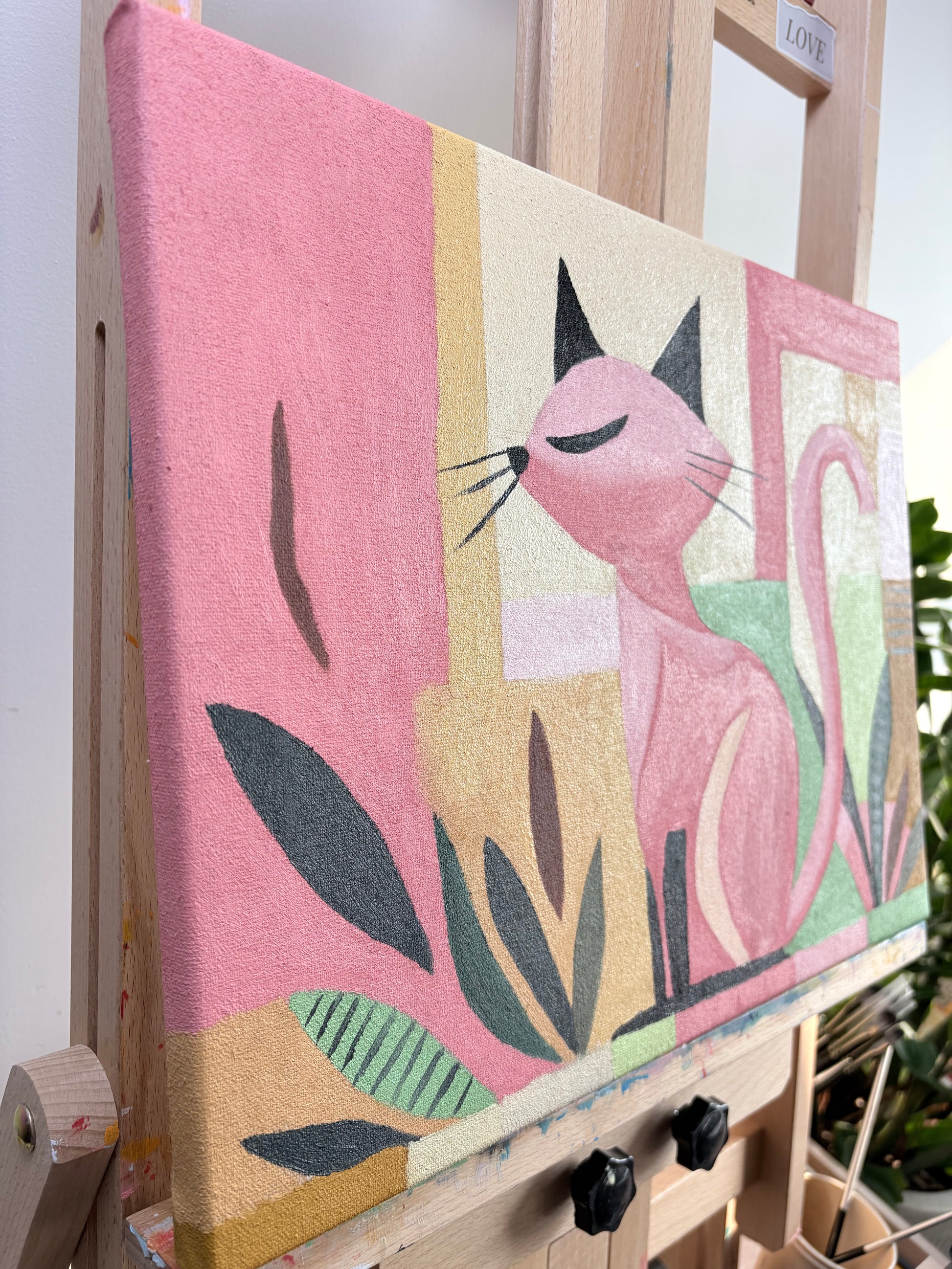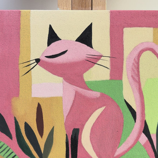 This cheerful pastel cat was created to bring a soft modern warmth to any space.